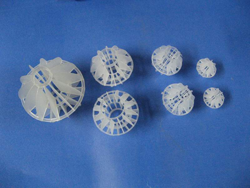 采用聚丙烯塑料制成球状,在球中部沿整个周长有一道加固环,环的上下各有十二片球瓣,沿中心轴呈放射形布置,适用于二氯化碳脱气塔,接触反应塔等装置。