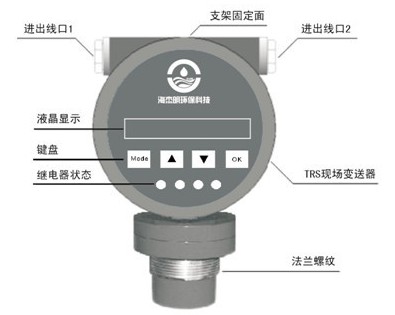HJM-6000型超声波明渠流量计采用超声波、以非接触的方式测量明渠堰槽内的水位高度,再由微处理机自动换算出对应的流量值。仪表测流量时,液晶显示器瞬时流量及累计流量;测液位时则显示液位及上下线报警指示。仪表采用了EEPROM数字存储器,停电后可以确保仪器内数据不会丢失。